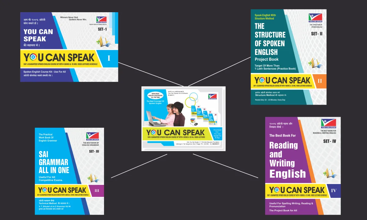 It's a very different one and useful book. Keep this book with you while watching You can speak kit for the best result. It contains remarkable techniques of spoken English . It has many picture methods, tables, jokes and creative writing. It also provides you perfect uses of all tenses as well as modals. It has 319 pages.